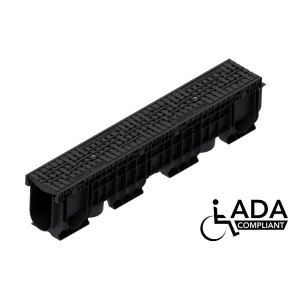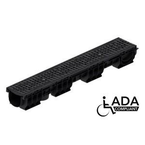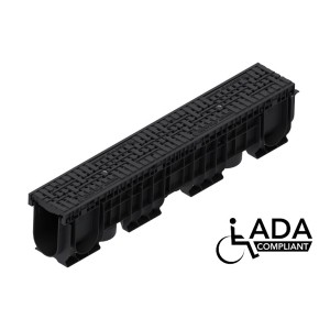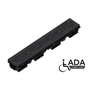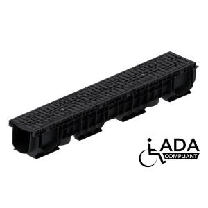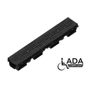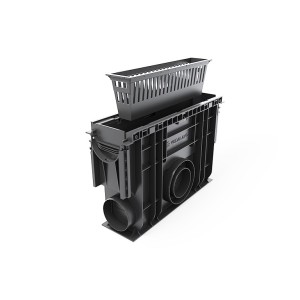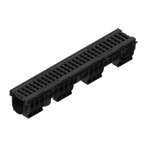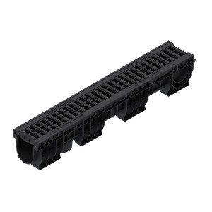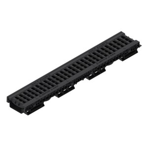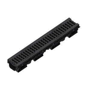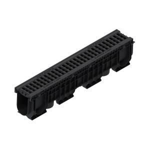 Rigolă din plastic BASE DN100 H200 cu grătar metalic zincat în fante clasa de sarcini A15