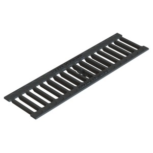 Rigola modernizată Base DN100, fabricată din plastic rezistent, cu o înălțime de 200 mm, este echipată cu grătare din fontă ductilă cu fante și este proiectată pentru instalare în zone carosabile cu trafic auto moderat, având o capacitate de încărcare de până la 25,0 tone (clasa C250, conform EN 1433).