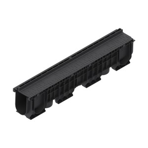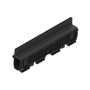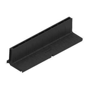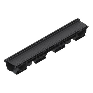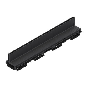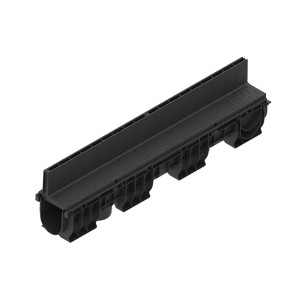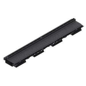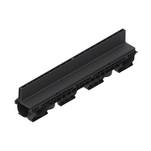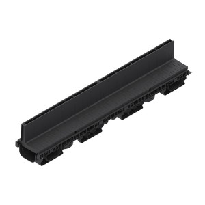 Rigola PolyMax Base DN100 (din polipropilenă) cu înălțimea H=60mm, dotată cu gratar din polipropilena in fanta longitudinala, destinată pentru instalarea în zone pietonale cu trafic intensiv, clasa de încărcare A15 (15 kN/m2) conform EN 1433, la organizarea sistemului liniar de colectare a apelor meteorice. Datorită suprafeței interne netede a rigolei (canalului din polipropilenă), garanteaza un coeficient mare de scurgere a apei si nu prezinta niciun punct de legatura cu exteriorul, pe unde s-ar putea infiltra apa.