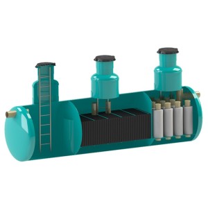 Separator de hidrocarburi si materii în suspensie VODALAND, denumirea nouă OilAbsorbH700-45 (orizontal) cu debit Q=45,0l/sec. sunt instalații monobloc executate din poliesteri armați cu fibră de sticlă (PAFS), destinate pentru captarea, separarea şi reţinerea produselor petroliere (uleiuri, motorină, și restul substanțelor de origine petroliere) şi substanțelor solide din apele pluviale, cu concentrații de până la 700 mg/l (provenite de la ploi, ape în urma dezgheţurilor şi a apelor industriale uzate) de a nu polua solurile și resursele de ape.