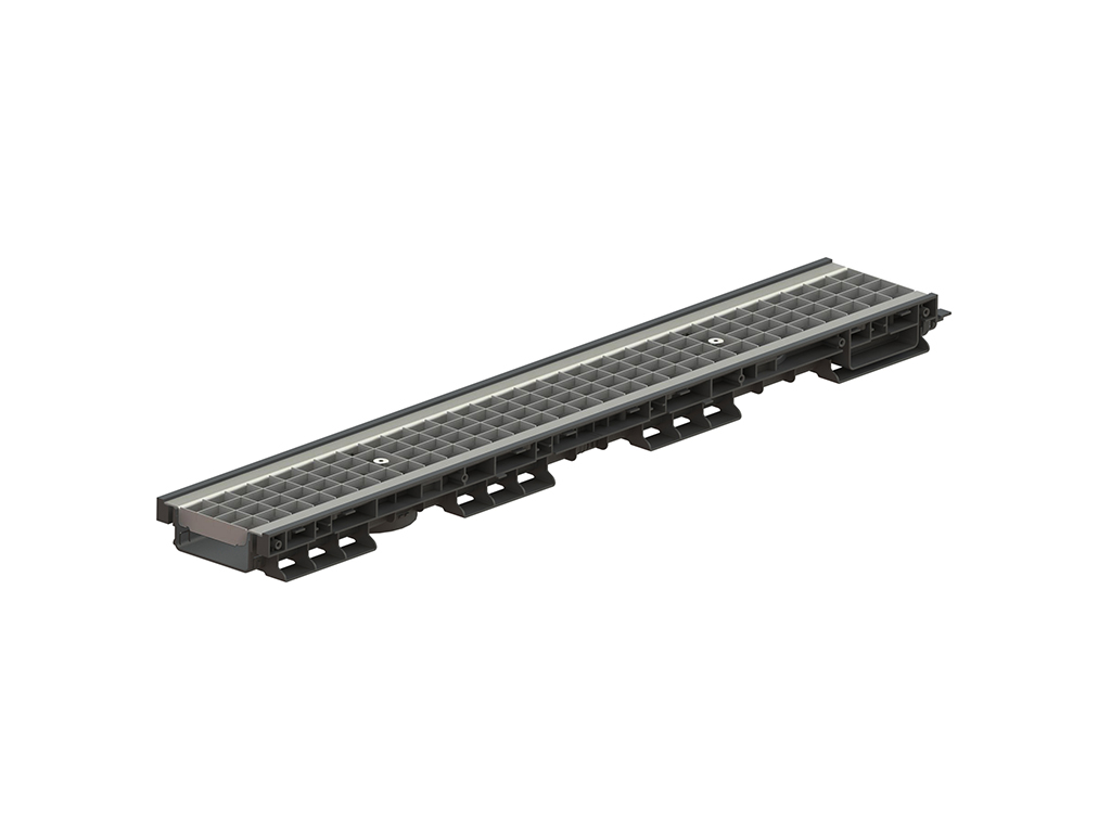 Rigolă Base DN100 H75 cu grătare din poliamidă cu fibră de sticlă (PA-GF) în grilă, clasa de sarcini B125 (1000x156x75)
