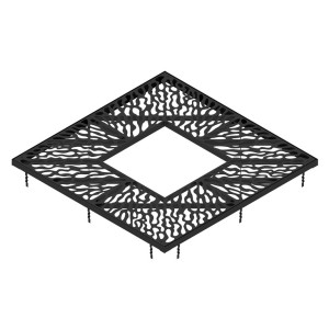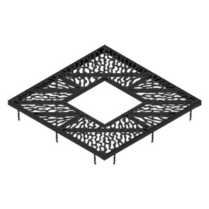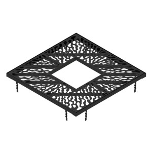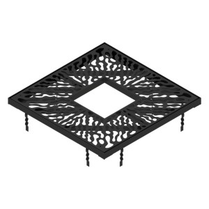 Квадратная приствольная решетка для деревьев изготовляется из серого чугуна. Имеет размер 770х770х35 и внутренний круглый вырез диаметром 500мм. Используются для монтажа на асфальтированных поверхностях, мощенных дорогах, выложенных брусчаткой или плиткой тротуарах для защиты корневой системы растений от механических воздействий и повреждений. Позволяют проводить полив кустов свозь решетки, а также предотвращают их порчу животными. Кроме этого, повышают комфорт людей путем расширения пешеходной зоны.