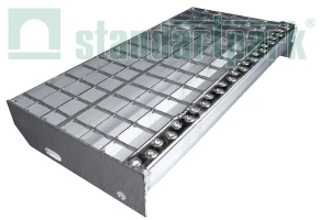 Стандартно лестничные ступени изготавливают из сварного настила DIN 24531-1 шириной от 600 мм до 1200 мм, и глубиной – от 240 мм до 305 мм.