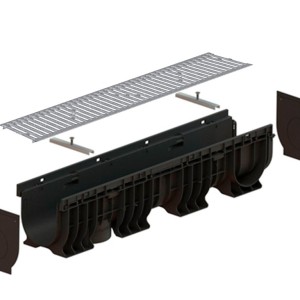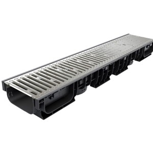 Лоток водоотводный пластиковый BASE DN150 H100 с решеткой щелевой стальной оцинкованной A15 (1000x206xH100мм)