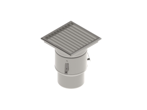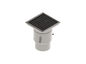 Трап INOX 250х250 с вертикальным выпуском D110, гидрозатвором, уловителем примесей и решеткой перфорированной класса L15 согласно EN1253