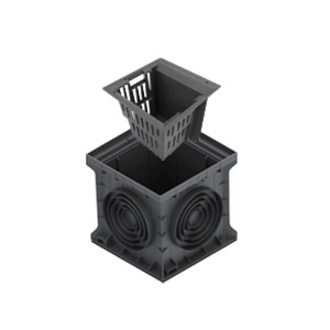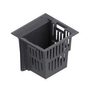 Квадратный, полипропиленовый дождеприемник, с сифонными перегородками и корзиной для сбора мусора, предназначен для сбора дождевой воды в пешеходных зонах.