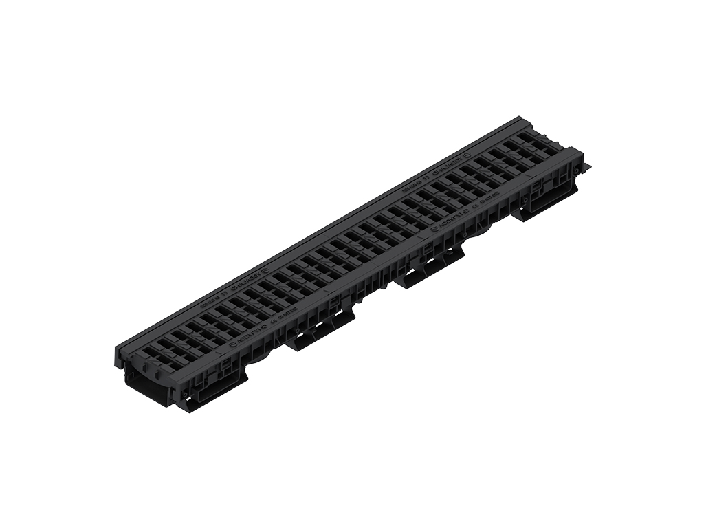 Лоток водоотводный Base DN100 H75 с решеткой полиамидной усиленной стекловолокном (PA-GF) класс B125 (1000x156x75)