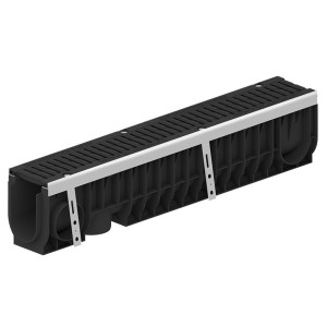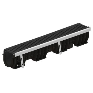 Кромка пескоуловителя PolyMax Drive усилена насадкой из оцинкованной стали на которую ложится чугунная решетка, которая в свою очередь, надежно закреплена с пескоуловителем посредством болтов. Корпус пескоуловителя PolyMax Drive изготовлен из полипропилена. Решетка изготавливается из высокопрочного чугуна и выдерживает нагрузку до 40 тонн, класс D400 (400 kN) согласно стандарту EN 1433.