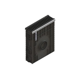 Пескоуловитель PolyMax Drive с внутренним сечением 100мм (DN100), укомплектован решеткой щелевой чугунной класса D400 (выдерживающей нагрузку до 40 тонн), устанавливается в местах с высокой интенсивностью движения (АЗС, автомойки, промышленные зоны, транспортные терминалы, автодороги и автопредприятия) в совокупности с линией водоотводных лотков, непосредственно в точке сброса/подключения к трубопроводу через имеющиеся шаблоны под врезку в трубу.